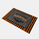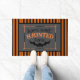 Halloween Haustürmatte mit fett orangefarbenem und schwarz gestreiftem Hintergrund mit Mitte "Zuhause Sweet Spuk Zuhause" Wortart
