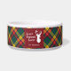 Niedliche Zuhause süße Zuhause Weihnachts Chili Schüssel können Sie leicht anpassen, indem Sie auf die Schaltfläche "Personalisieren", Featuring und Hirsch Silhouette und Clan Buchanan tartan in grün, gelb und rot Karo. Ideal für die kleine Familie im Urlaub