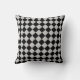 Elegantes schwarz-graues Diamantmuster. Die Vorderseite des Kissens hat den Text: Zuhause Sweet Zuhause.