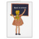 "Zurück in die Schule" KLEINE MÄDCHEN TRAGEN EIN ROTES KARIERTES KLEID UND BRAIDEN IN IHREM HAAR, SCHREIBEN AUF CHALKBOARD