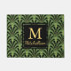 Schwarz- und Goldkunst-Deko reden Fanmuster über einem grünen Hintergrund mit Ihrer Wahl des helles Goldpersonalisierten Textes an.