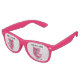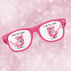 Diese Retro-Party-Brille hat einen atomaren Stil Katzen, eine schwarze und eine weiße sitzen zusammen in einem Stuhl in hellen Rosatönen auf einem weißen Hintergrund mit rosa Punkten. Passen Sie Ihren Text mit der Vorlage an.