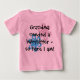 Niedliches Kleinkind im Shirt mit zwei Blume in Rosa und Blau, die sagen: "Oma brauchte einen Babysitter - also hier bin ich!"