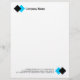 Ein Business-Letterhead-Template-Design mit einem zweifarbigen, doppelquadratischen oder rautenförmigen Dekormotiv, das in der oben verlassen Ecke, 1/2 Zoll von den Kanten des Papiers entfernt, sowie in der unteren rechten Ecke, wo das Motiv gedreht wird, um die Töne umzukehren. Firmenname ausgerichtet neben dem oberen Motiv mit E-Mail, Web, Adresse und Telefondaten, die am unteren Motiv ausgerichtet sind. Dieses einfache, aber attraktive berufliche Design lässt sich auf viele Arten anpassen.