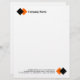 Ein Business-Letterhead-Template-Design mit einem zweifarbigen, doppelquadratischen oder rautenförmigen Dekormotiv, das in der oben verlassen Ecke, 1/2 Zoll von den Kanten des Papiers entfernt, sowie in der unteren rechten Ecke, wo das Motiv gedreht wird, um die Töne umzukehren. Firmenname ausgerichtet neben dem oberen Motiv mit E-Mail, Web, Adresse und Telefondaten, die am unteren Motiv ausgerichtet sind. Dieses einfache, aber attraktive berufliche Design lässt sich auf viele Arten anpassen.