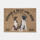 Das Coir Doormat mit zwei hübschen Colliesen, die nebeneinander sitzen, ist ein idealer Ort, um Sie und alle Ihre Furry-Freunde mit offenen Pfoten zu begrüßen! Diese mit Liebe und Liebe zum Detail gestaltete Türmatte ist nicht nur eine funktionale Ergänzung zu Ihrer Haustür, sondern auch ein skurriles Statement, das Ihnen jedes Mal, wenn Sie Ihre Zuhause betreten, ein Lächeln ins Gesicht bringt. Diese Begrüßungsmatte kann mit dem Namen Ihres Hundes personalisiert werden, der Slogan kann auch geändert werden oder Sie können ein Foto Ihres eigenen Hundes verwenden (stellen Sie sicher, dass es transparent ist). Text liest: Cooper & Sally Live Here... Alle Leckereien sind willkommen. Ein wunderbares Geschenk für ein Party, Ferien, Hundefreunde und für jeden Anlass.