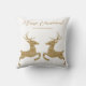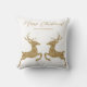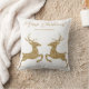 Desteis hüpfende Hirschformen in digital geschaffenen Imitaten goldgelben Glitzer-Textur. Die beiden Hirsche stehen einander gegenüber und es gibt zwei personalisierbare Textbereiche darüber. Es gibt einen personalisierbaren Textbereich für einen Familiennamen mit Text, der nun lautet: "Frohe Weihnachten!". BITTE BEACHTEN SIE: Das Design ist ein digital erstelltes Bild, das auf dem Produkt gedruckt wird.