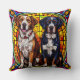 Zwei Hunde in einem gestanzten Glas-Design Kissen
