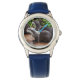 Kinderuhr aus Edelstahl mit blauem Lederarmband