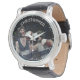 Uhr, Vintage Männeruhr mit schwarzem Lederarmband