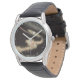 Uhr, Vintage Männeruhr mit schwarzem Lederarmband