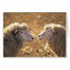 Ein süßer Schuss von zwei wolligen Schafen, die sich anschauen.