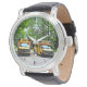 Uhr, Vintage Männeruhr mit schwarzem Lederarmband