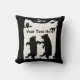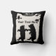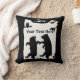 Dieses Kissen wird in Schwarz-Weiß gemacht, zwei Bären tanzen im Wald unter Bäumen im Gras mit einer Eule, die sie von einem Baum aus beobachtet. Passen Sie Ihren Text mit der Vorlage auf der Vorder- und Rückseite an.