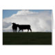 Schwarze Kühe silhouettiert gegen flauschige weiße Wolken in einem australischen blauen Himmel.