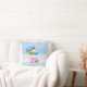 Das Blue Beach House bietet ein individuelles Kissen mit Sandbuckel und Beachball. Das Design hat zwei Themen: eine Seite in blauem Muster und die andere Seite in rosa und blau.