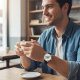Vintage Männeruhr mit schwarzem Lederarmband