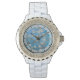 Eine wunderbare Damenuhr mit weißem Armband und grün-weiß-kariertem Ziffernblatt. Trägt sich ganz fabelhaft. Exzellenter Druck, sehr klare Farben. Schönes Design.