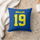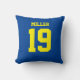 Fügen Sie einen Namen und eine(n) Zahl(n) hinzu, um dieses benutzerdefinierte doppelseitige blaue und gelbe Sportjersey inspirierte Akzent Kissen zu personalisieren. Es ist ein ausgezeichnetes Geschenk für einen sportlichen Fan oder Sportler. Es stehen die Optionen zur Farbänderung und zum Ändern der Schriftart-Größe zur Verfügung.