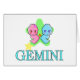 Für die geboren unter dem Zeichen der Zwillinge. Astrologisches Zeichen der Zwillinge, das zwei niedliche Doppelbabys zurück zu Rückseite und Sternen kennzeichnet.